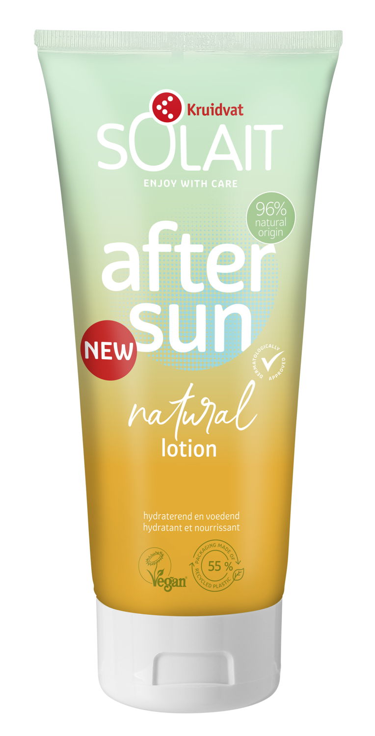 En plus d’un emballage écoresponsable, vous souhaitez également une protection solaire avec des filtres minéraux ? La formulation de Kruidvat Solait Natural contient uniquement des filtres minéraux, est végane et enrichie en beurre de karité bio et en extrait de calendula bio.
